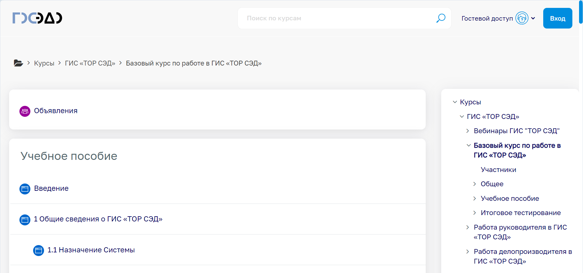 Базовый курс по работе в ГИС «ТОР СЭД»