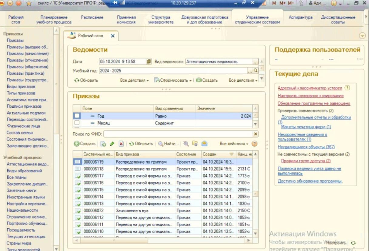 • Обработка приказа «Выпуск» в 1С:Универси...